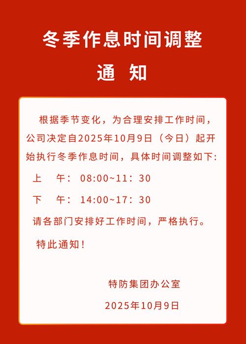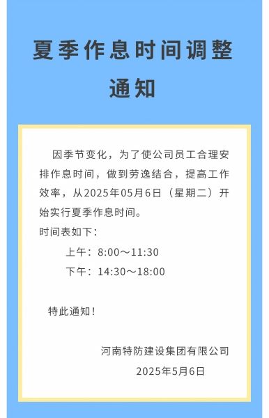 特防集團(tuán)夏季作息時間調(diào)整
