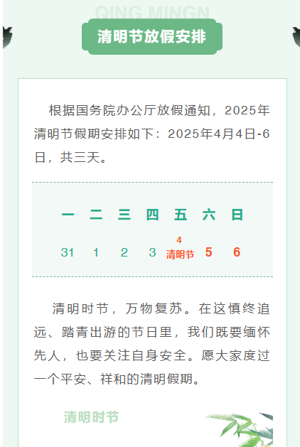 2025年 清明節(jié)放假通知
