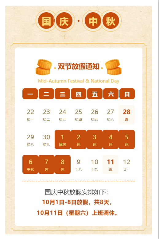 國慶、中秋放假安排