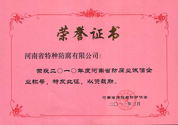 2010年度河南省防腐業(yè)誠(chéng)信企業(yè)