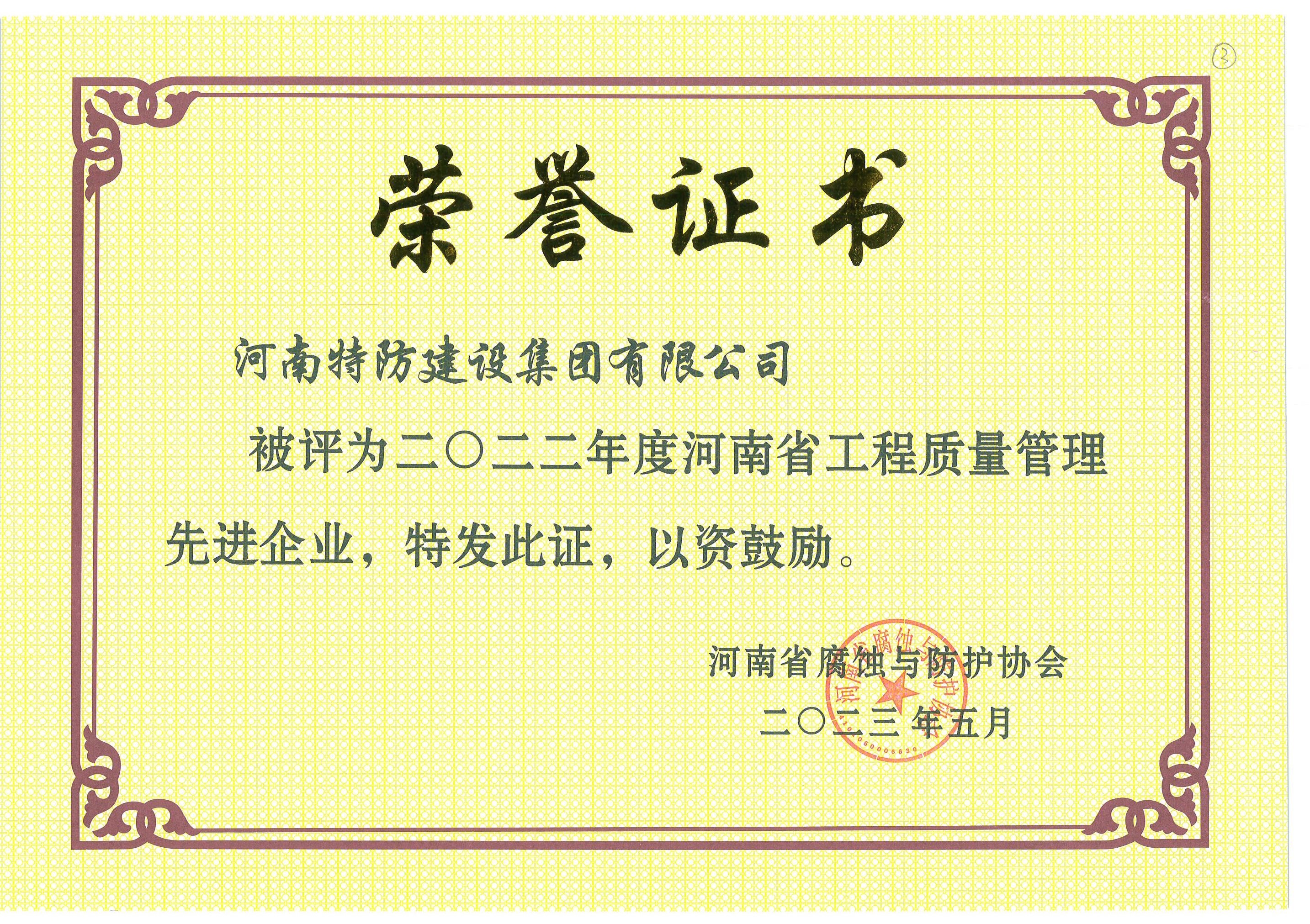 2022年度 河南省工程質(zhì)量管理先進(jìn)企業(yè)
