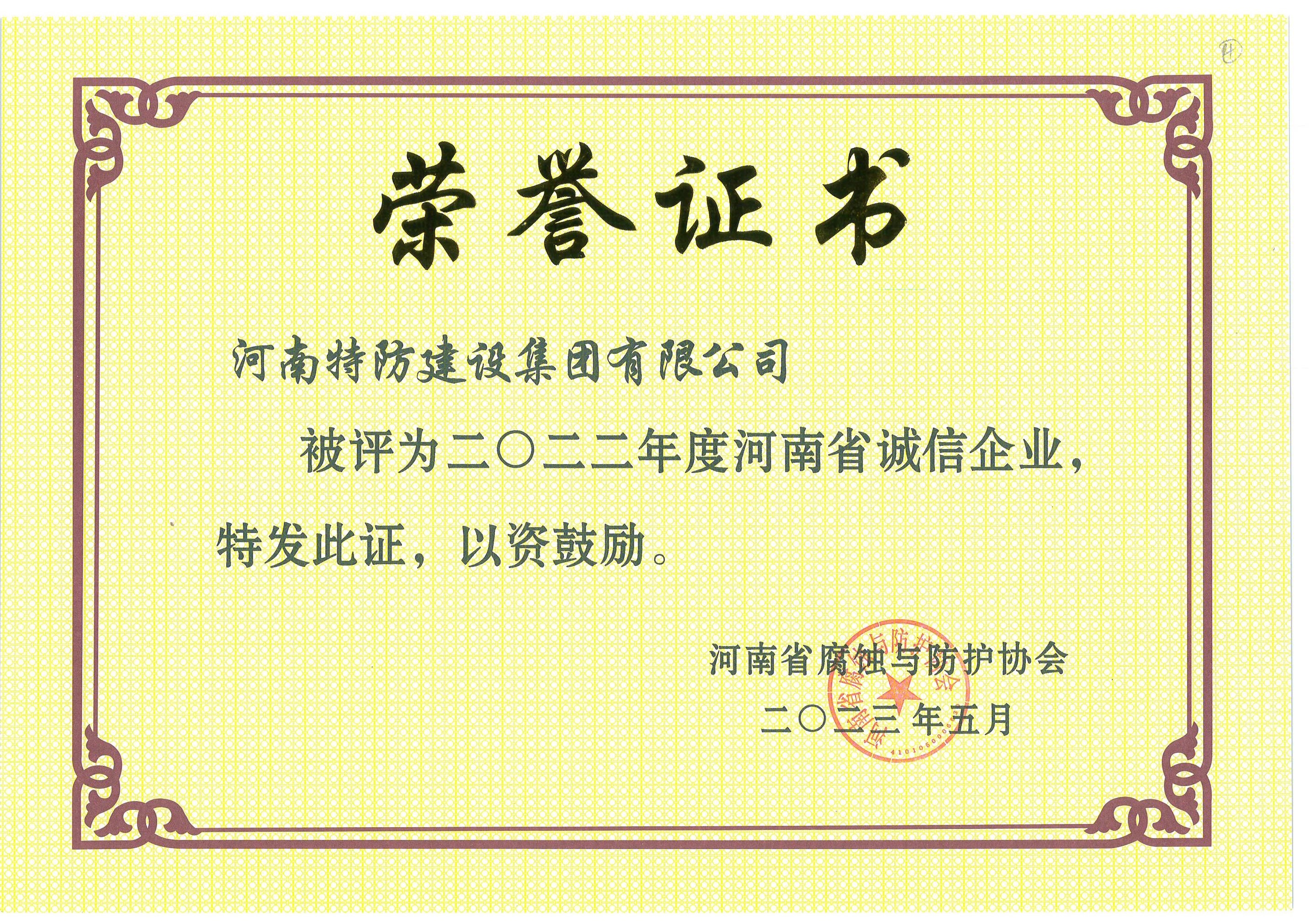 ? 2022年度 河南省誠(chéng)信企業(yè)