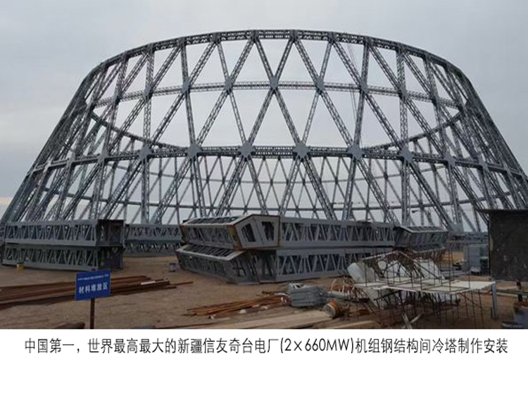 中國第一,世界*高*大的新疆信友奇臺(tái)電廠(2×660MW)機(jī)組鋼結(jié)構(gòu)間冷塔制作安裝1