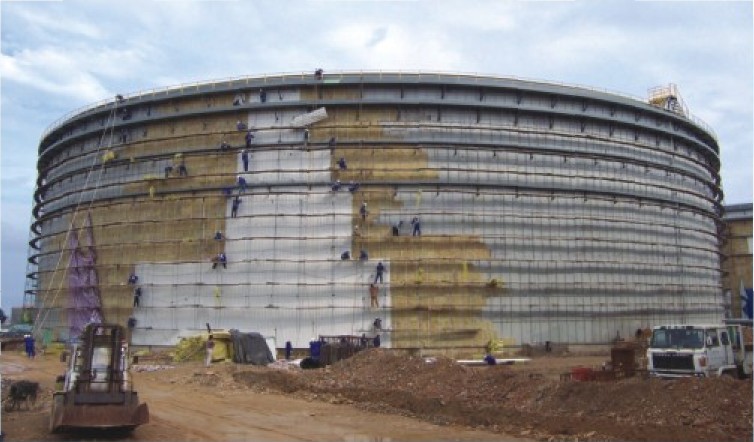 大連北海罐區(qū)10×10?m3儲(chǔ)油罐內(nèi)防腐外保溫工程