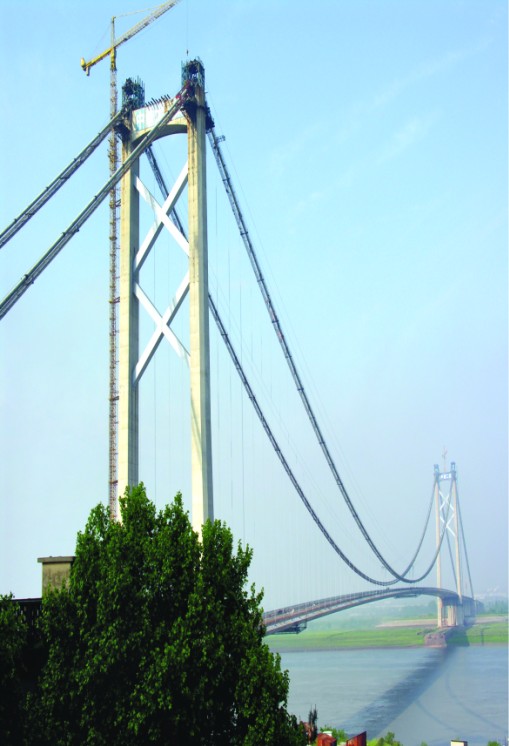 武漢陽邏長江公路大橋剪刀撐(165m高)噴涂工程