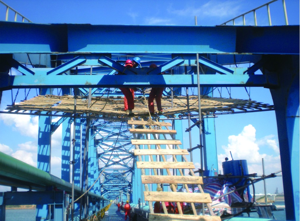 海南煉化原油碼頭鋼引橋噴砂除銹防腐工程